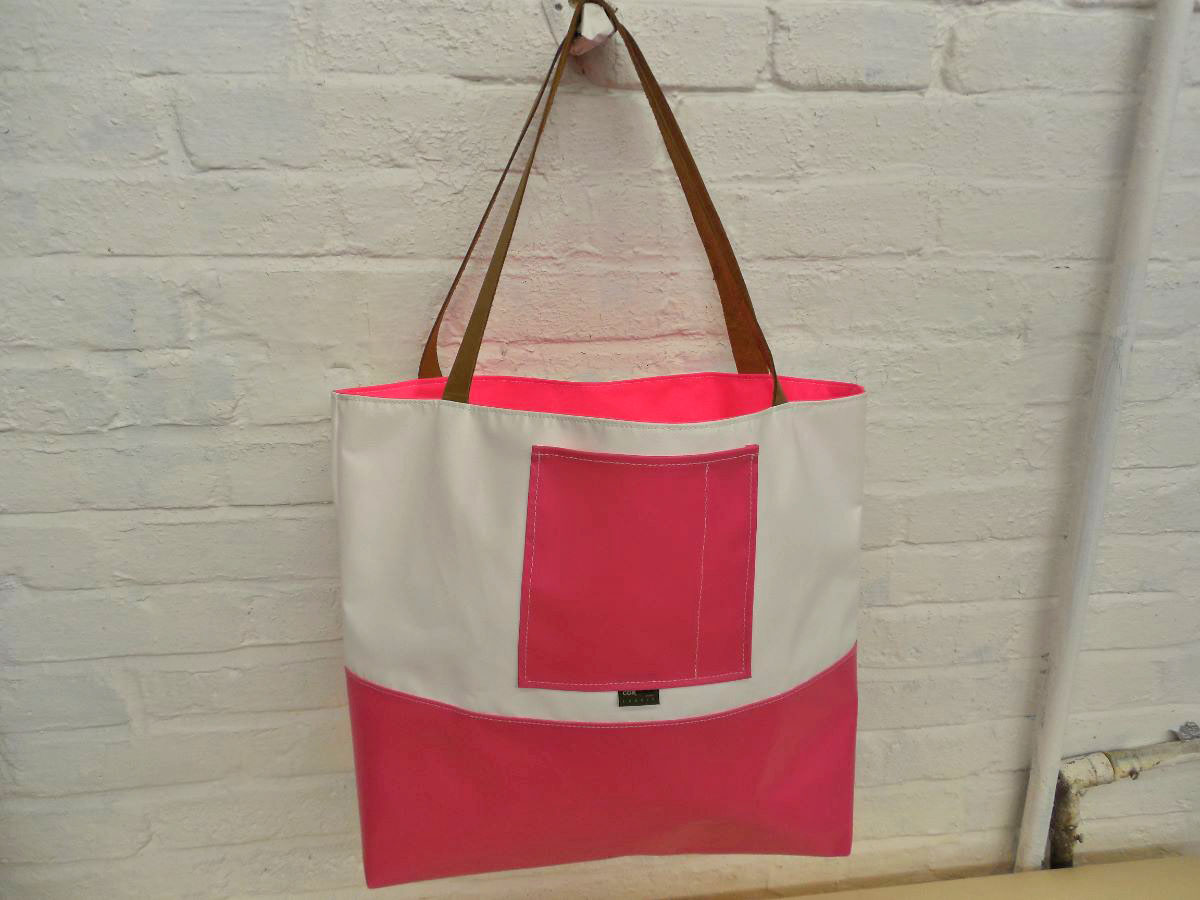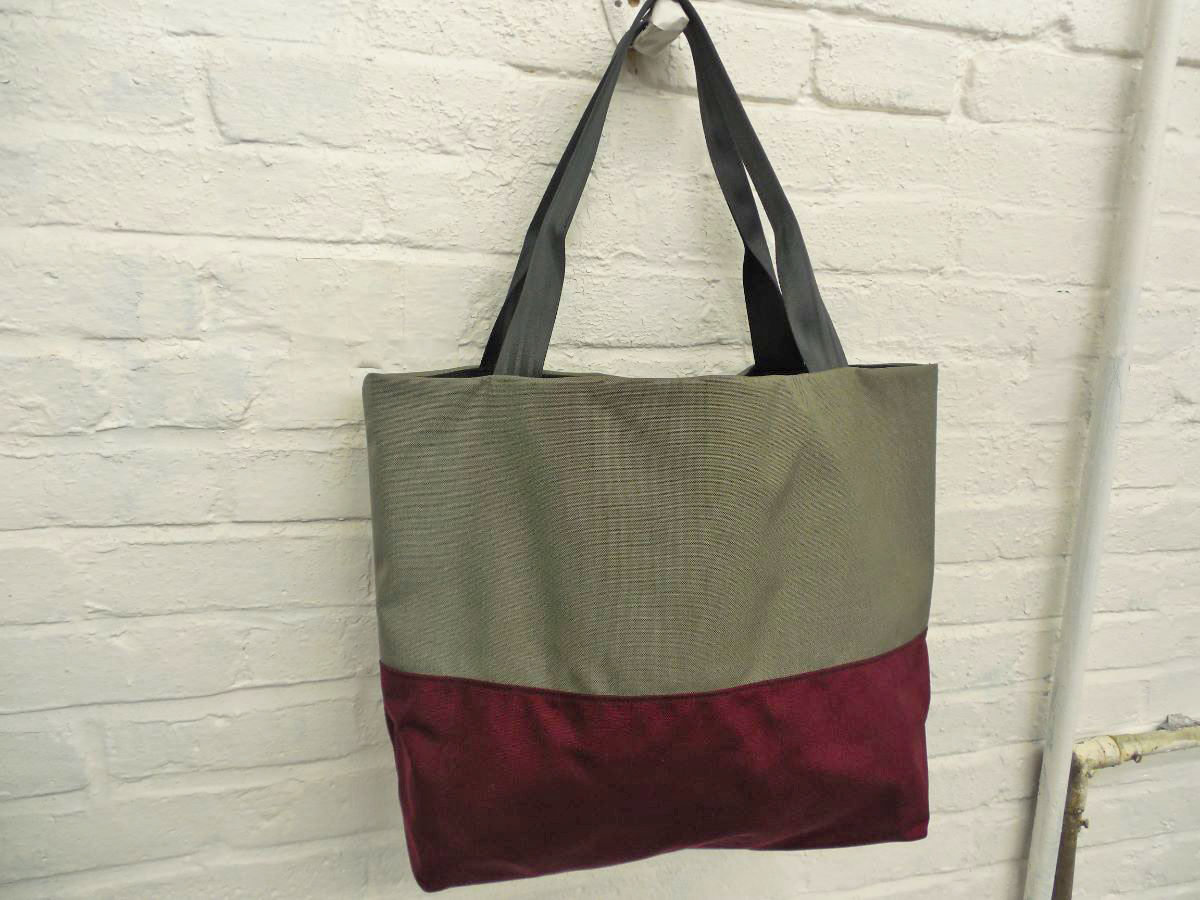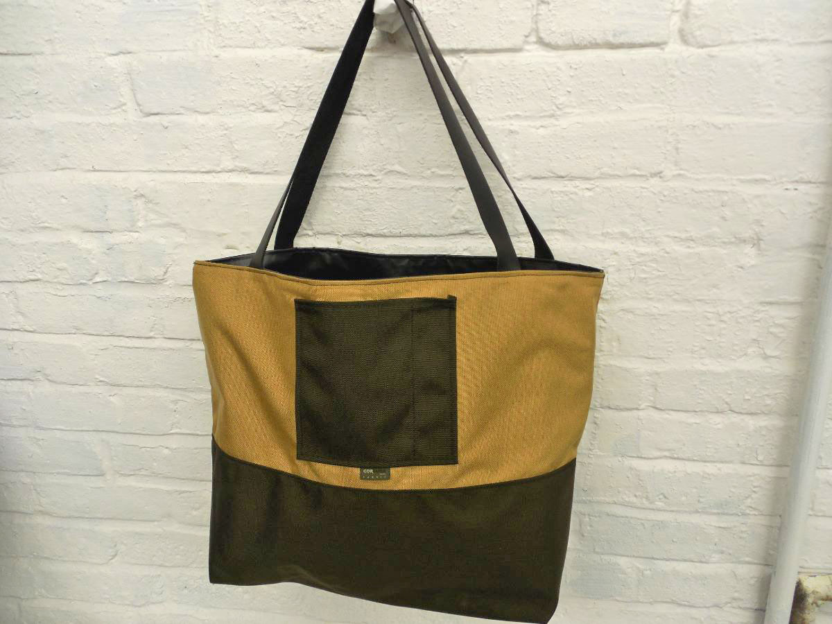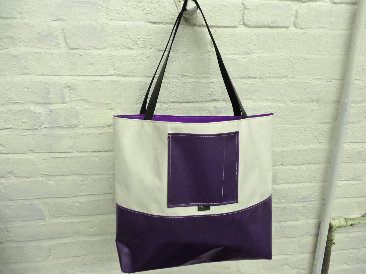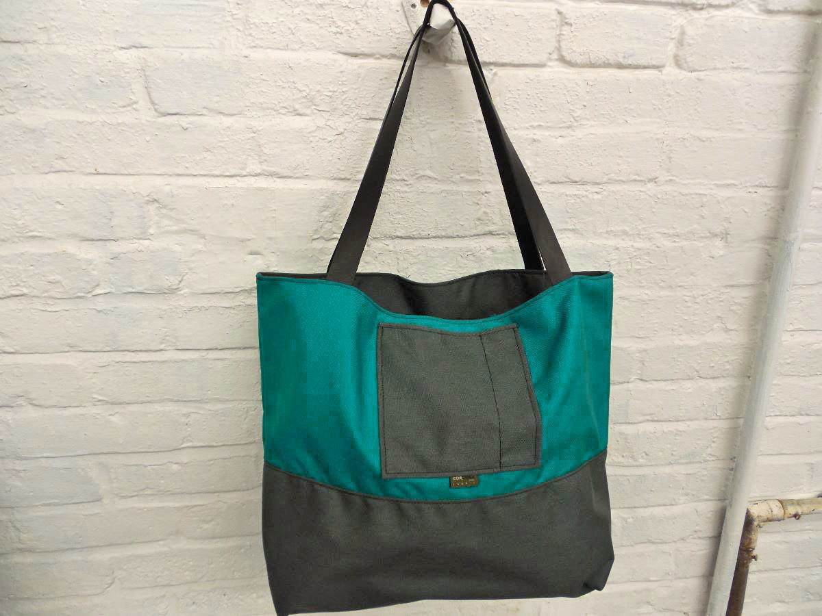 A larger tote than The Weekender, this is our 2-piece design tote, made from reclaimed and recycled heavy duty Cordura© Nylon and/or 18 oz Vinyl or 22 oz Marine Vinyl. Leather, Seatbelt, or Cordura style strap, with Cordura or Sunbrella© liner. Durable, long-lasting, and immaculately crafted. This is a stylish tote bag, ideal for shopping or general purpose use.
