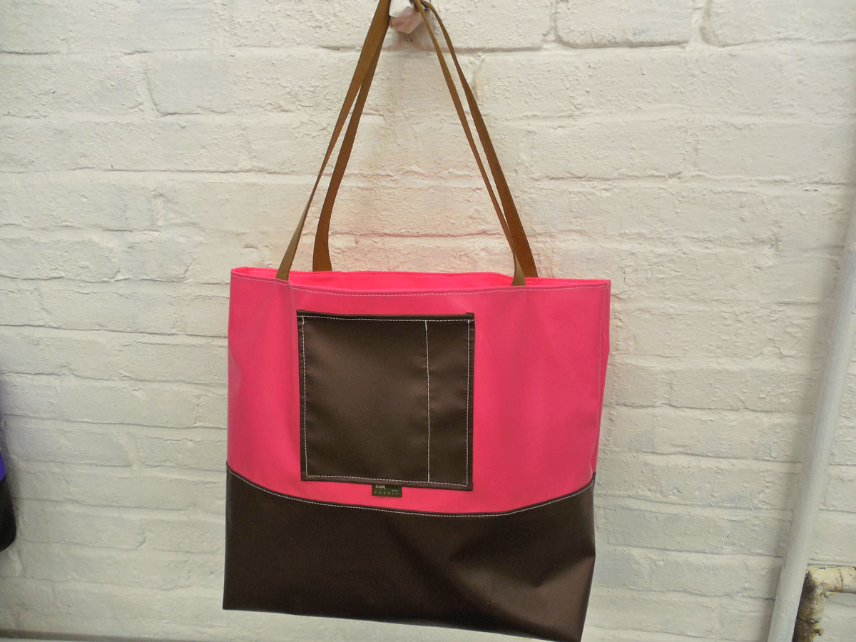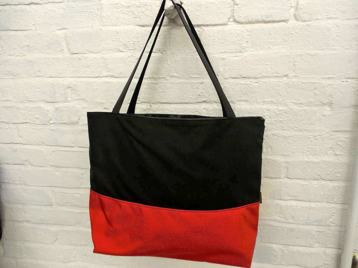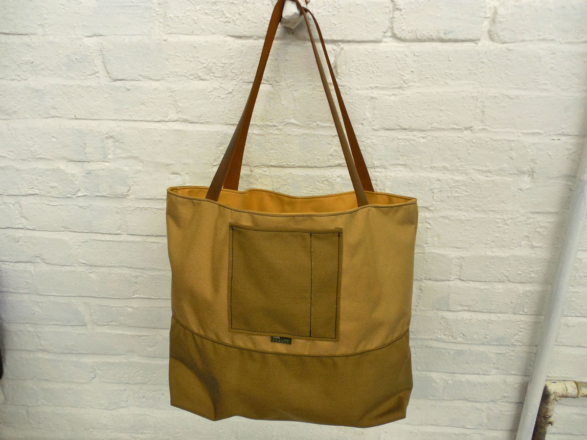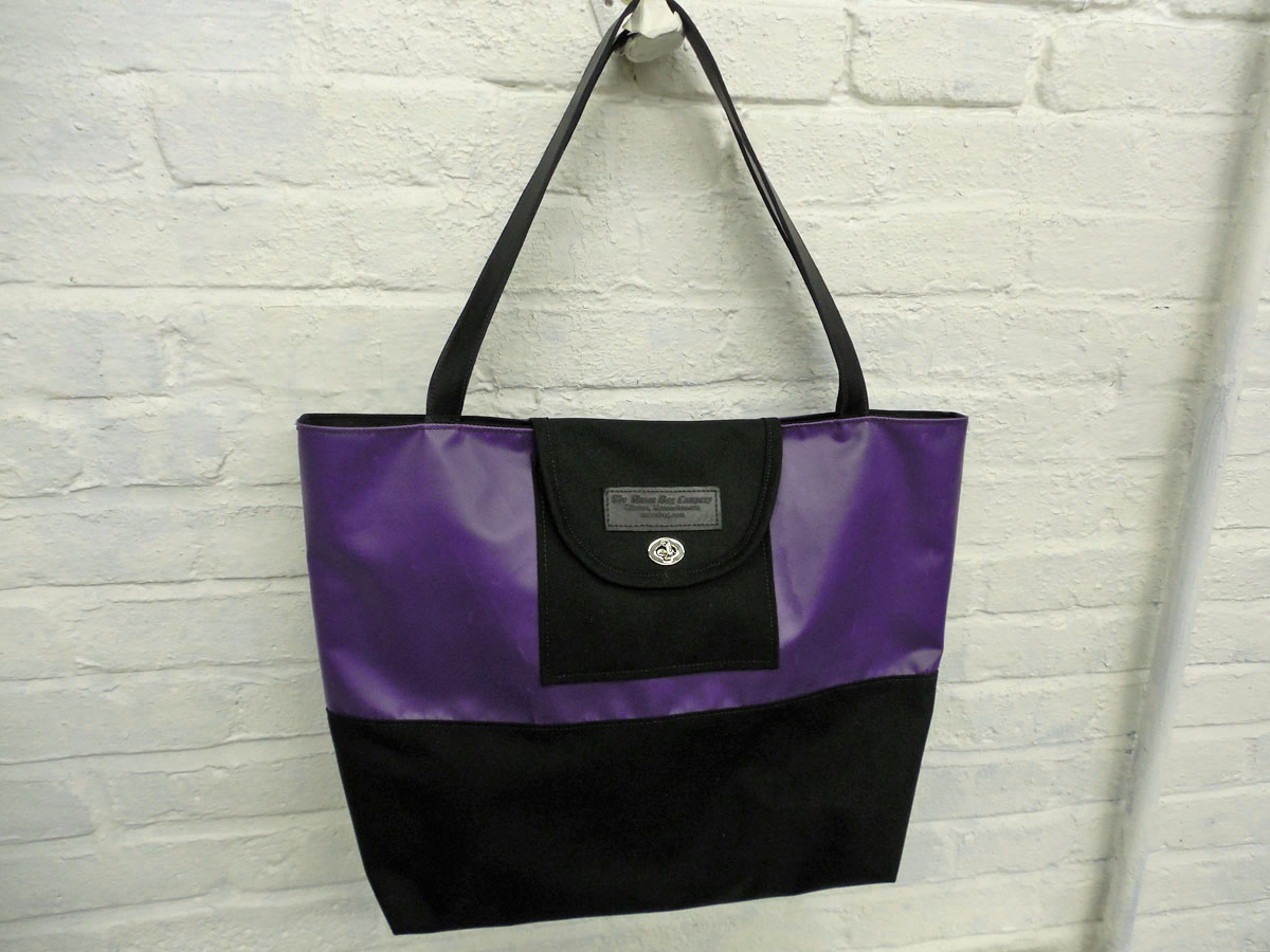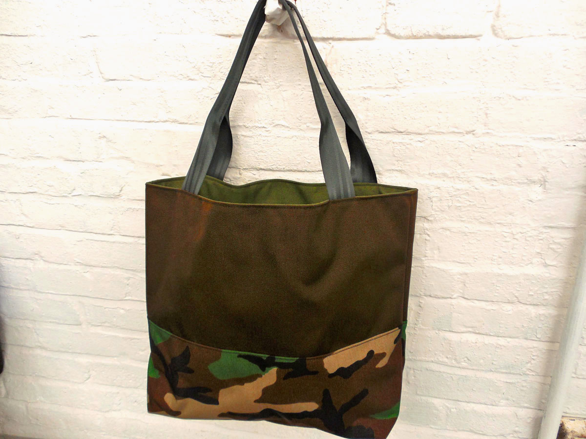 A larger tote than The Weekender, this is our 2-piece design tote, made from reclaimed and recycled heavy duty Cordura© Nylon and/or 18 oz Vinyl or 22 oz Marine Vinyl. Leather, Seatbelt, or Cordura style strap, with Cordura or Sunbrella© liner. Durable, long-lasting, and immaculately crafted. This is a stylish tote bag, ideal for shopping or general purpose use.